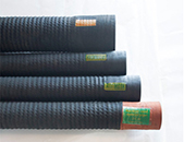Lona de textil sintético de alta resistencia a la ruptura y bajo coeficiente de deformación mas alare helicoidal de alta resistencia. Cubierta: Tipo C2 (Nitrilo modificado), color verde, resistente a la gasolina, al aceite, grasas, intemperie, ozono y a la abrasión. Con . tira verde en espiral. Factor de Diseño: 4:1
