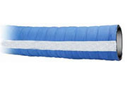 Manguera para impulsión de alimentos líquidos excepto aceites y productos grasos. Taién para limpieza y lavado en industrias alimentarias. Especificaciones Técnicas: Tubo interior: EPDM de calidad alimentaria, blanco, liso. Armadura: hilos sintéticos. Revestimiento: EPDM resistente a la intemperie, azul, bandelado. Temperatura: -30°C a +100°C